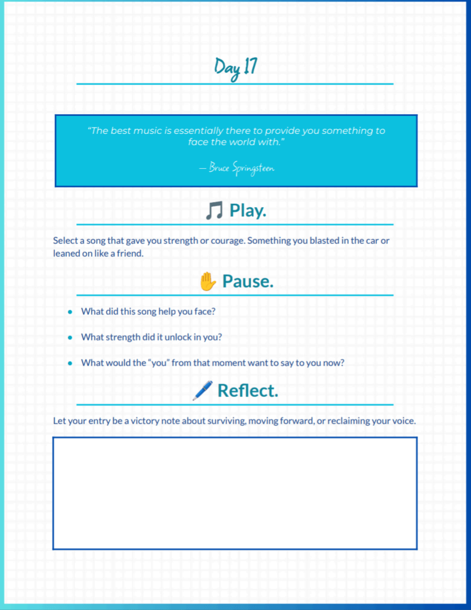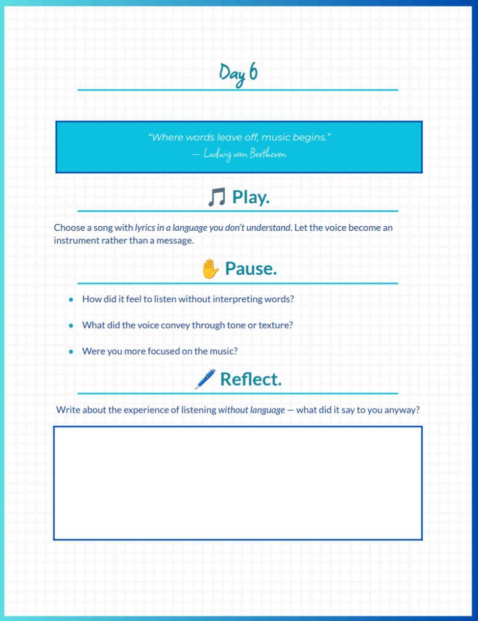 ✅ 31 curated daily prompts combining music, mindfulness, and journaling